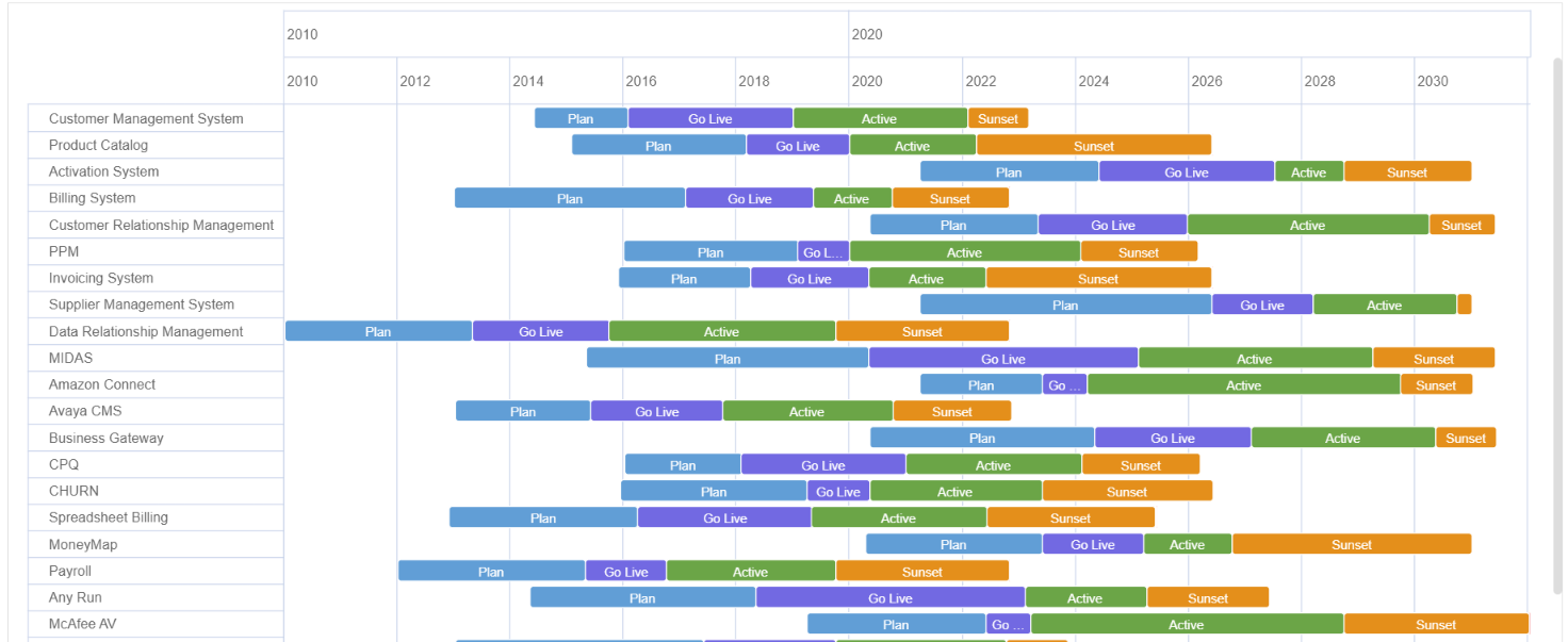 The advanced lifecycle roadmap is a powerful method for showcasing the status of various architectural artifacts, such as applications, capabilities, or projects. It plays a pivotal role in the Application Portfolio Planning providing a clear and concise overview of their lifecycles. It enables strategic planning, efficient resource allocation, risk management, enhanced decision-making, improves transparency of communication, and more which ultimately contributes to Business growth.