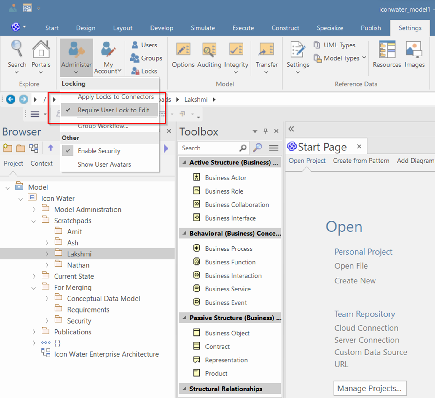the "Require User Lock to Edit" mode is enabled, the model will indeed