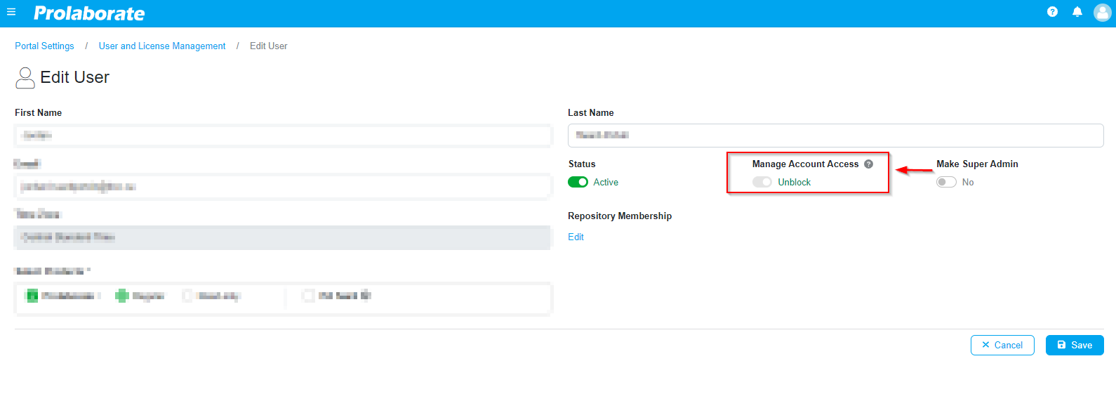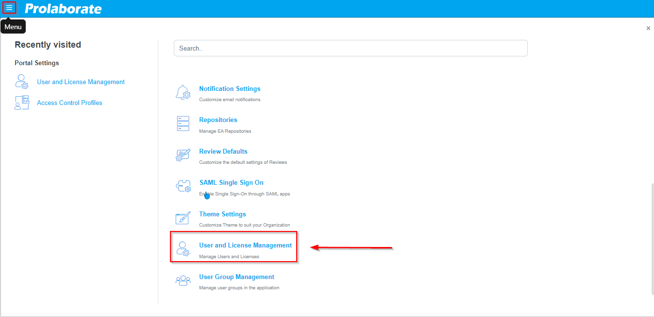 Step 1: Log in to Prolaborate and search the user management section.