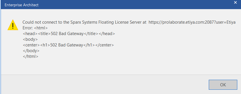 Q2 Error in Could not connect to the Sparx Systems Floating License