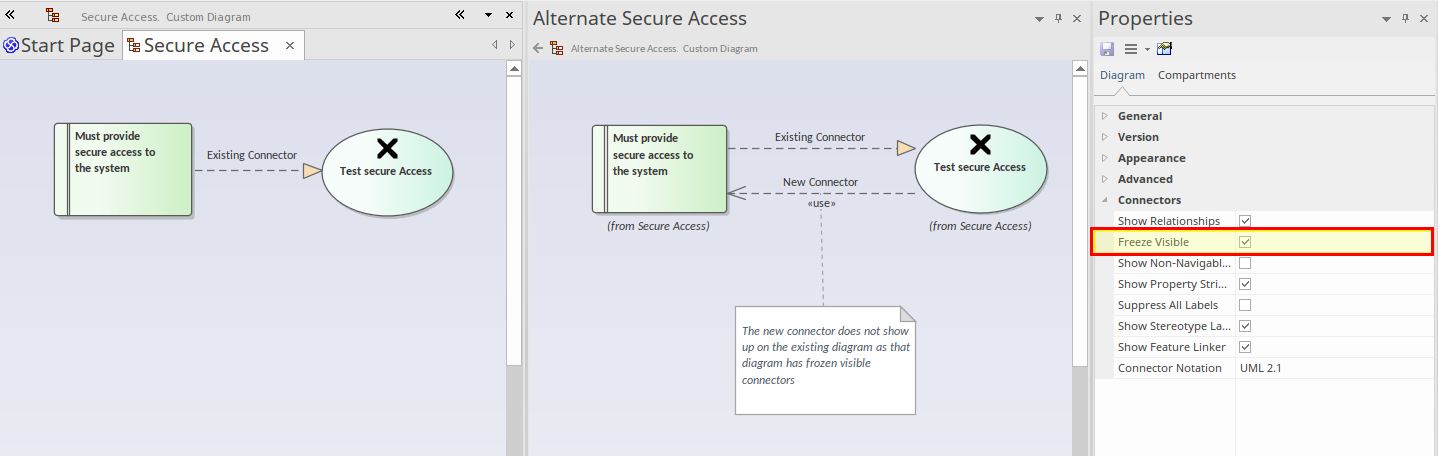 We have investigated and found that the issue occurred as the Freeze Visible Connectors option has been enabled. This option means that any new connectors added to a diagram will be hidden and is most useful when adding connectors between the same elements on a different diagram.