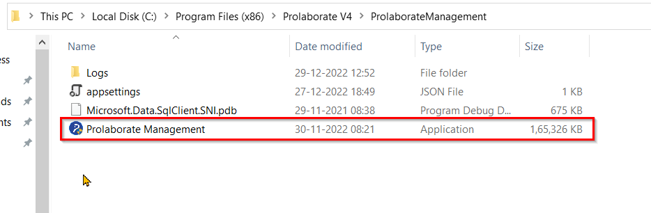 Step 1: Open the Prolaborate Management from the following path: “C:\Program Files (x86)\Prolaborate V4\ProlaborateManagement”