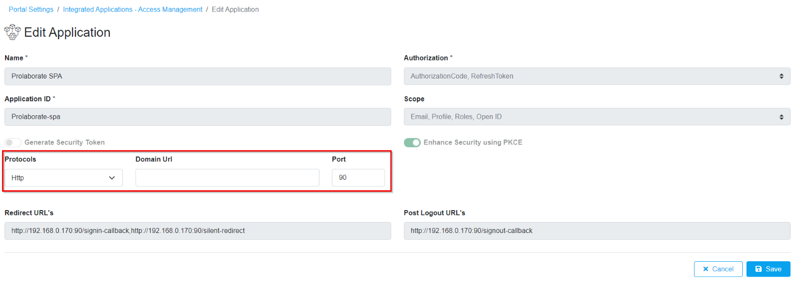 Step 6: This URL opens the Edit Application page in Prolaborate.