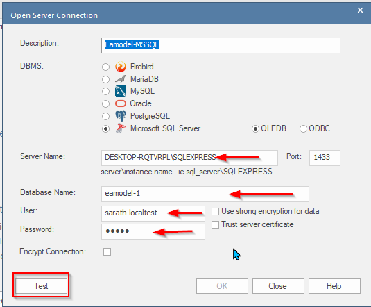 Step 1: You Need to fill the details in Open server Connection dialog box.