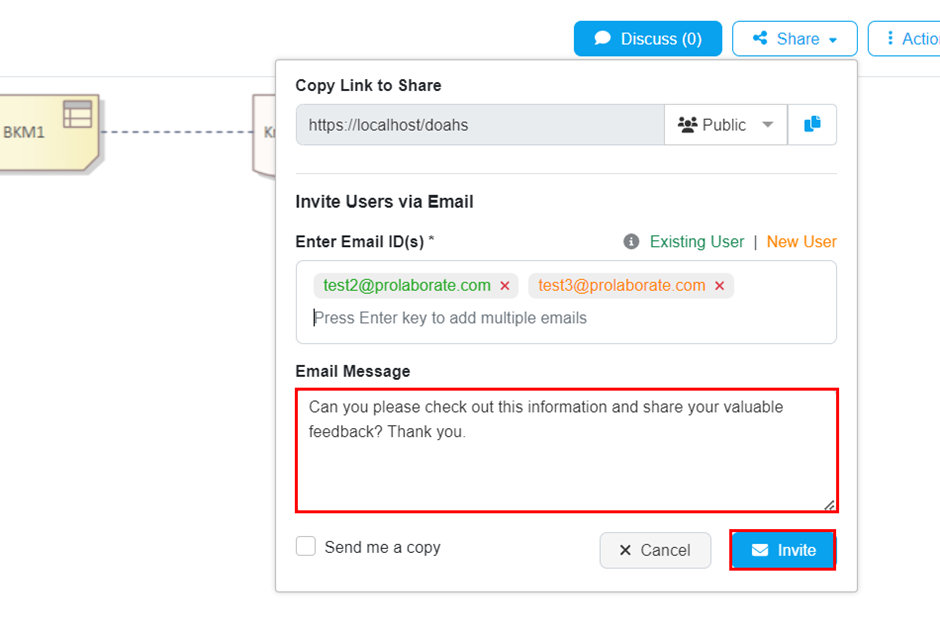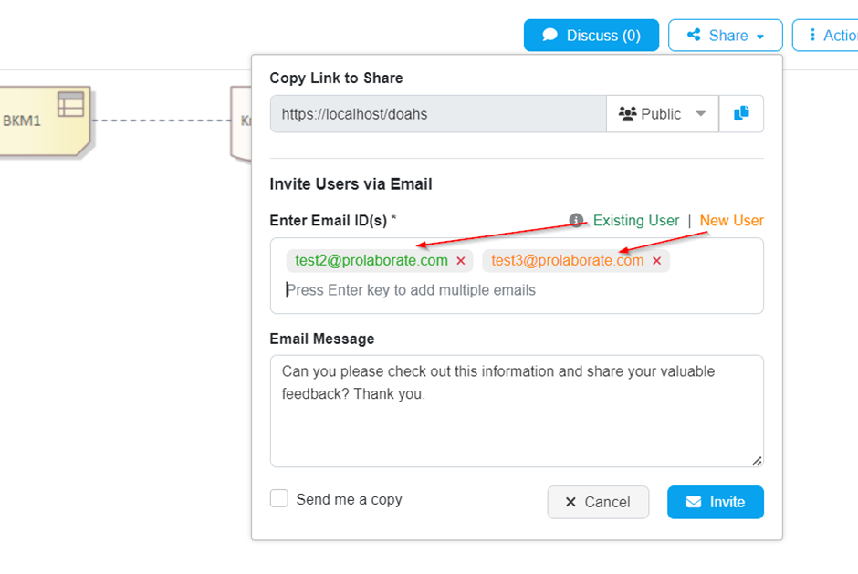 customer had enquired about inviting existing users via email in Prolaborate. Troubleshooting